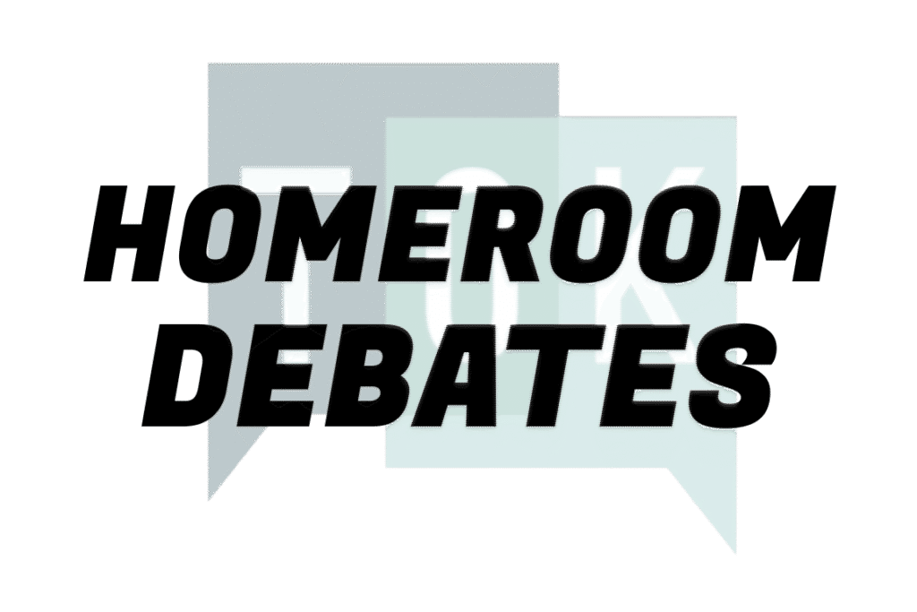 The Homeroom Debates is a ‘lite’ version of the monthly newsletter. They offer 2-slide critical thinking exercises for students, without requiring them to read the media sources.